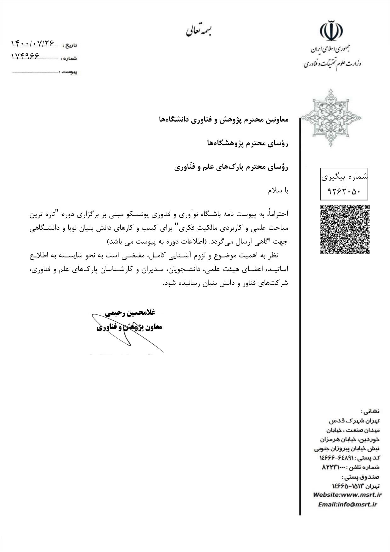 در خصوص برگزاری تازهترین مباحث علمی و کاربردی مالکیت فکری
