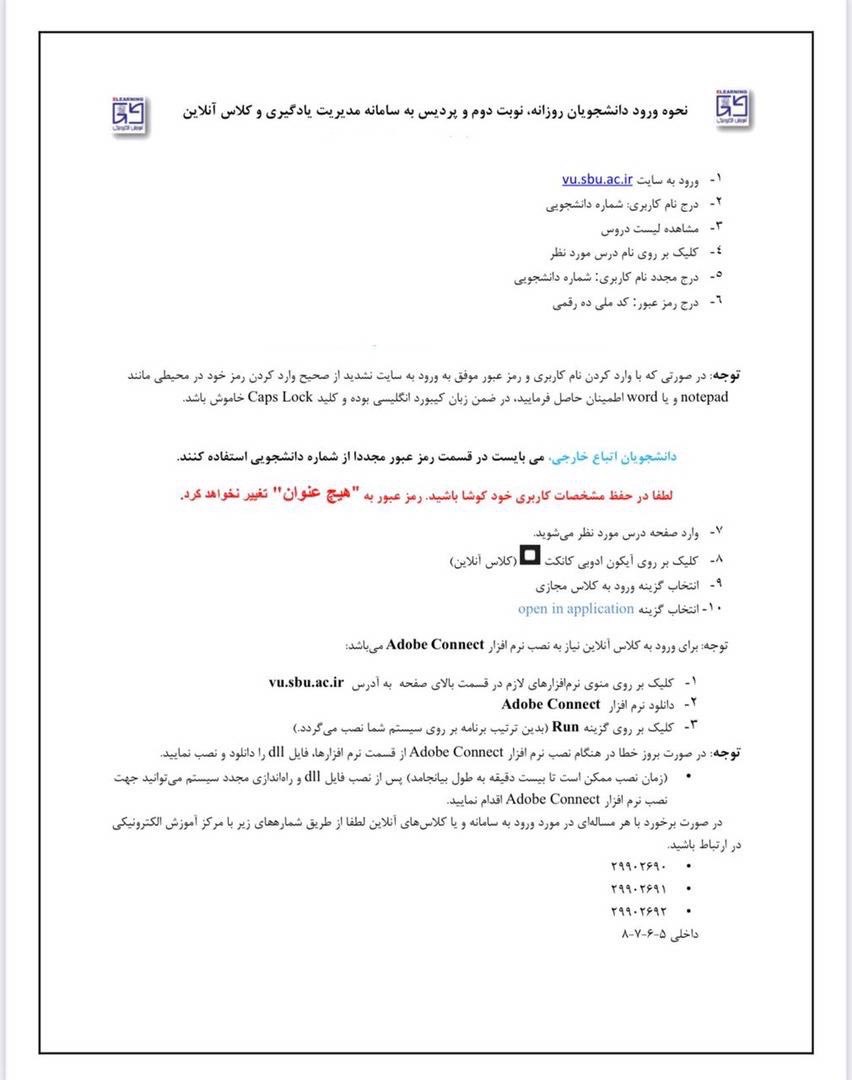 - كليه كلاس هاى آموزشى به صورت غيرحضورى (در سامانه (LMS) بركزار مىشود.